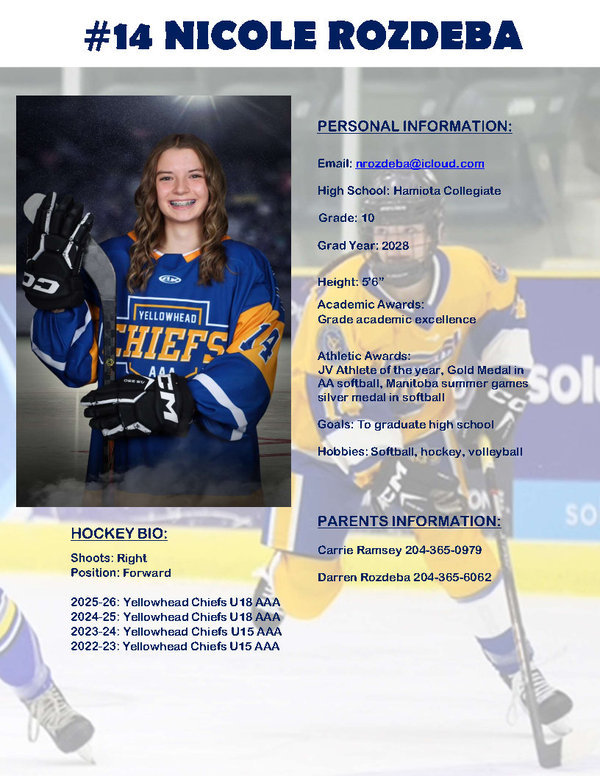 | 10/10/25 | Yellowhead Chiefs Female U18 AAA | @NAX | W4-2 | 1 | 60 | 1 | | 1 | | 1.00 | 1.00 |