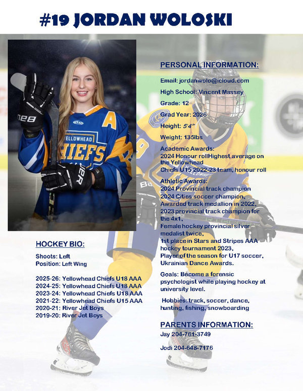 | 9/19/25 | Yellowhead Chiefs Female U18 AAA | Westman Wildcats | L6-2 | 1 | 60 | | | | | .00 | .00 |